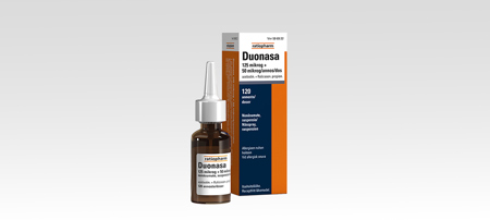 Duonasa on kaksitehoinen nenäsumute kausiluontoisen allergisen nuhan nenä- ja silmäoireiden hoitoon. Kausiluonteinen allerginen nuha on allerginen reaktio, joka aiheutuu esimerkiksi siitepölystä (heinänuha). Duonasa lievittää allergian oireita, kuten nuhaa, takanielun limaisuutta, aivastelua ja nenän kutinaa tai tukkoisuutta.