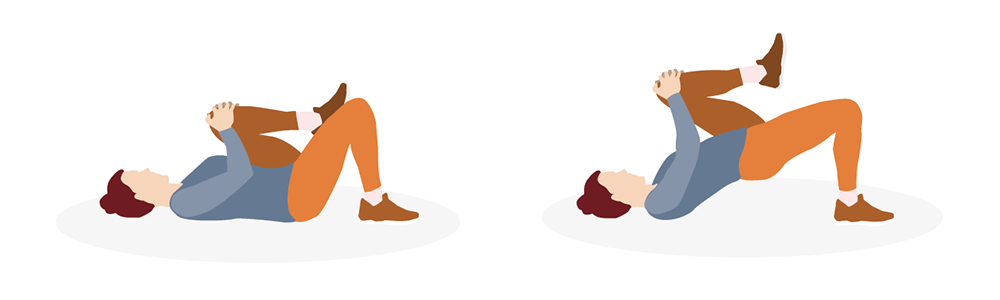 Asetu lattialle selinmakuulle. Ota vasen jalka syliin tarttumalla polven etuosasta ja tuomalla sitä kohti rintakehää. Koukista oikea jalka ja paina jalkapohja tukevasti lattiaan. Työnnä lantio ylös ponnistamalla oikean jalan pakaralla. Pysäytä liike yläasennossa pariksi sekunniksi ja purista pakaraa voimakkaasti. Laske lantio lattiatasoon ja ponnista taas ylös. Vaihda jalkaa. Toista 6–10 kertaa per jalka.