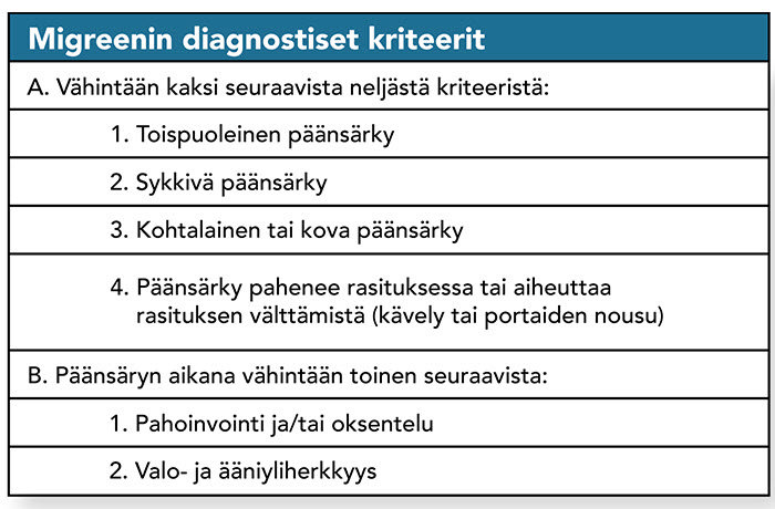 Taulukko 1. Migreenin diagnostiset kriteerit. 01