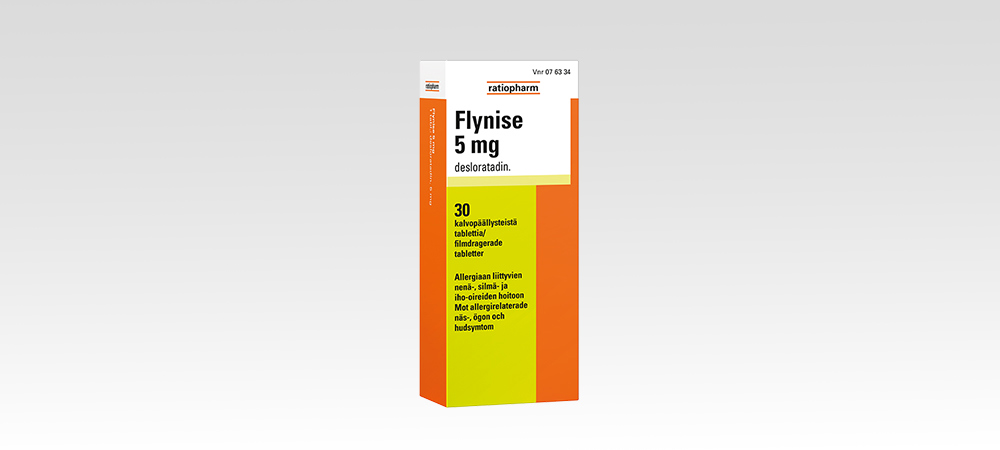 Flynise 5 mg on allergialääke, joka ei tee sinua uneliaaksi. Se auttaa sinua saamaan allergisen reaktiosi ja sen oireet hallintaan. Se lievittää allergiseen nuhaan (eli allergian, esim. heinänuhan tai pölypunkkiallergian, aiheuttamaan nenäkäytävän tulehdukseen) liittyviä oireita. Tällaisia oireita ovat aivastelu, nenän vuotaminen tai kutina, kitalaen kutina sekä silmien kutina, punoitus ja vuotaminen. Lääkettä käytetään myös lievittämään nokkosihottuman (allergian aiheuttaman ihoreaktion) oireita. Näitä oireita ovat kutina ja paukamat. Vaikuttava aine desloratadiini on antihistamiini.