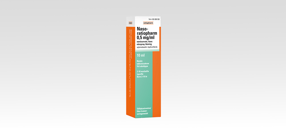 Naso-ratiopharm 0,5 mg/ml nenäsumutetta saa käyttää yhtäjaksoisesti enintään 5 vuorokauden ajan. Tutustu huolella pakkausselosteeseen. Itsehoitolääke.