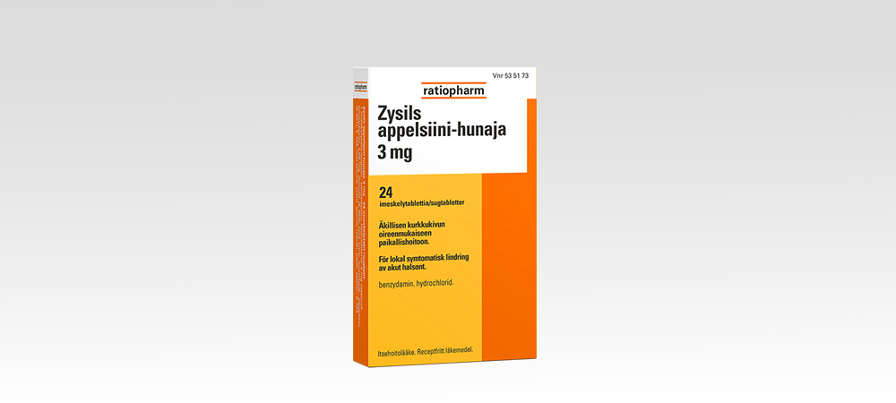 Zysils 3 mg -imeskelytabletit on tarkoitettu äkillisen kurkkukivun oireenmukaiseen paikallishoitoon aikuisille ja vähintään 6-vuotiaille lapsille. Ne helpottavat äkillistä kurkkukipua. Kaksi makuvaihtoehtoa: raikas sitruuna ja appelsiini-hunaja. Lue pakkausseloste huolellisesti. Itsehoitolääke.